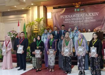 JAVASATU.COM-BATU- SMA Negeri 2 Batu melepas 348 wisudawan bertempat di Hotel Purnama, Kota Batu, Rabu (7/6/2023). Para lulusan terdiri atas...