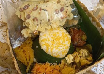JAVASATU.COM-BATU- Seribu takir yang merupakan wadah berbentuk kotak terbuat dari daun pisang yang berisi lauk pauk khas jawa, nasi empok...
