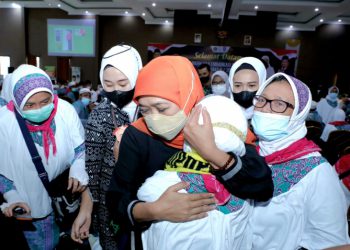JAVASATU.COM-SURABAYA- Gubernur Jawa Timur, Khofifah Indar Parawansa memantau langsung jalannya skrining kesehatan swab antigen terhadap kedatangan sebanyak 450 orang jemaah...