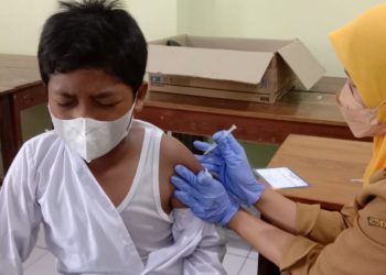JAVASATU-GRESIK- Pandemi Covid-19 belum berakhir, pemerintah terus menggalakkan vaksinasi anak termasuk di MI Ma'arif NU Sidomukti, Kebomas, Gresik pada Selasa...