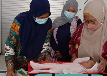 JAVASATU-GRESIK- Sebanyak 100 balita di Kampung Kemudinan, Kelurahan Sidomukti, Kecamatan Kebomas, Kabupaten Gresik dicek kesehatannya oleh petugas kesehatan Posyandu di...