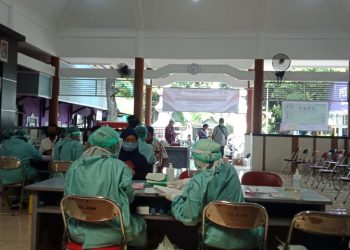 Petugas kesehatan dari RS Ibnu Sina Gresik melakukan rapid test di Pendopo Kecamatan Gresik. (Foto: Sudasir Al Ayyubi/Javasatu.com) Javasatu,Gresik- Petugas...