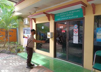 Javasatu,Gresik- Kepolisian Sektor (Polsek) Manyar, Kabupaten Gresik melakukan penanganan dan pencegahan penyebaran Coronavirus Disease 2019 (Covid-19) di tempat umum dan...