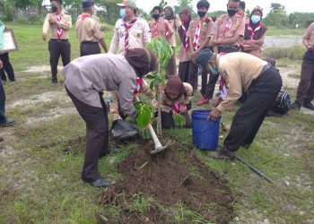 Javasatu,Gresik- Gerakan Pramuka Kwartir Cabang Gresik tingkat Penegak dan Pandega menggelar penghijauan di Bumi Perkemahan Sunan Kalijaga Kecamatan Sidayu, Kabupaten...