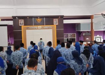 Camat Gresik Purnomo saat memimpin upacara peringatan HUT ke-49 Korpri di Kecamatan Gresik. (Foto: Sudasir Al Ayyubi/Javasatu.com) Javasatu,Gresik- HUT ke-49...