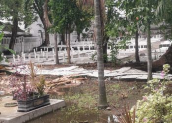 JAVASATU.COM-GRESIK- Tembok pembatas antara Makam Pahlawan dan makam Bupati pertama Gresik, Kiai Tumenggung Pusponegoro, dilaporkan roboh. Tembok pembatas yang roboh....