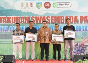 JAVASATU.COM- Bupati Kediri Hanindhito Himawan Pramana menyalurkan 34 unit traktor roda empat dan 73 ton benih padi kepada petani sebagai...