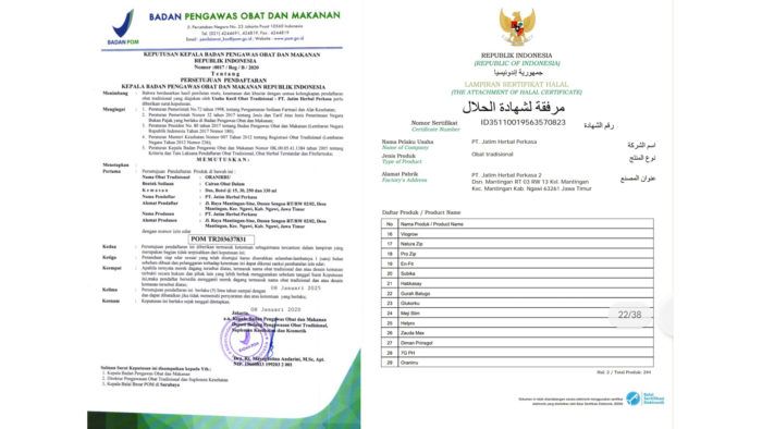 ORANIRRU Mengantongi Izin BPOM RI dan Sertifikasi Halal