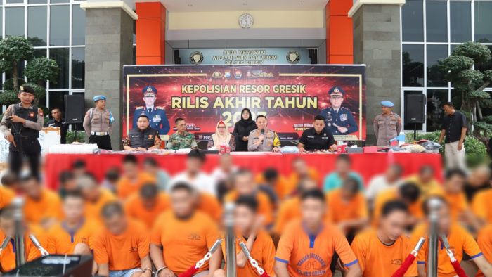 JAVASATU.COM-GRESIK- Kapolres Gresik AKBP Adhitya Panji Anom, bersama Forkopimda, mengadakan konferensi pers akhir tahun 2023 di halaman Polres Gresik pada...