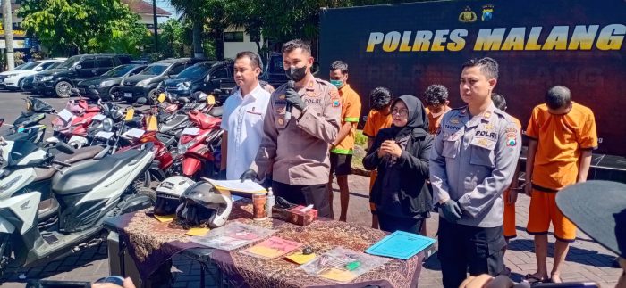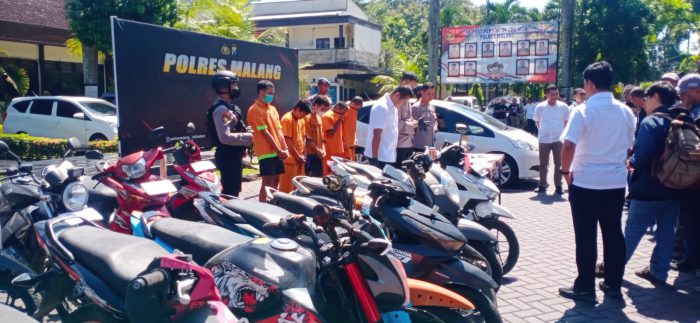 JAVASATU.COM-MALANG- Operasi Sikat Semeru 2023, yang lakukan sejak tanggal 15 – 26 Mei 2023, jajaran Kepolisian Resor (Polres) Malang berhasil mengungkap jaringan pelaku pencurian kendaraan bermotor (curanmor). 5 orang ditangkap dalam 37 Tempat Kejadian Perkara (TKP).