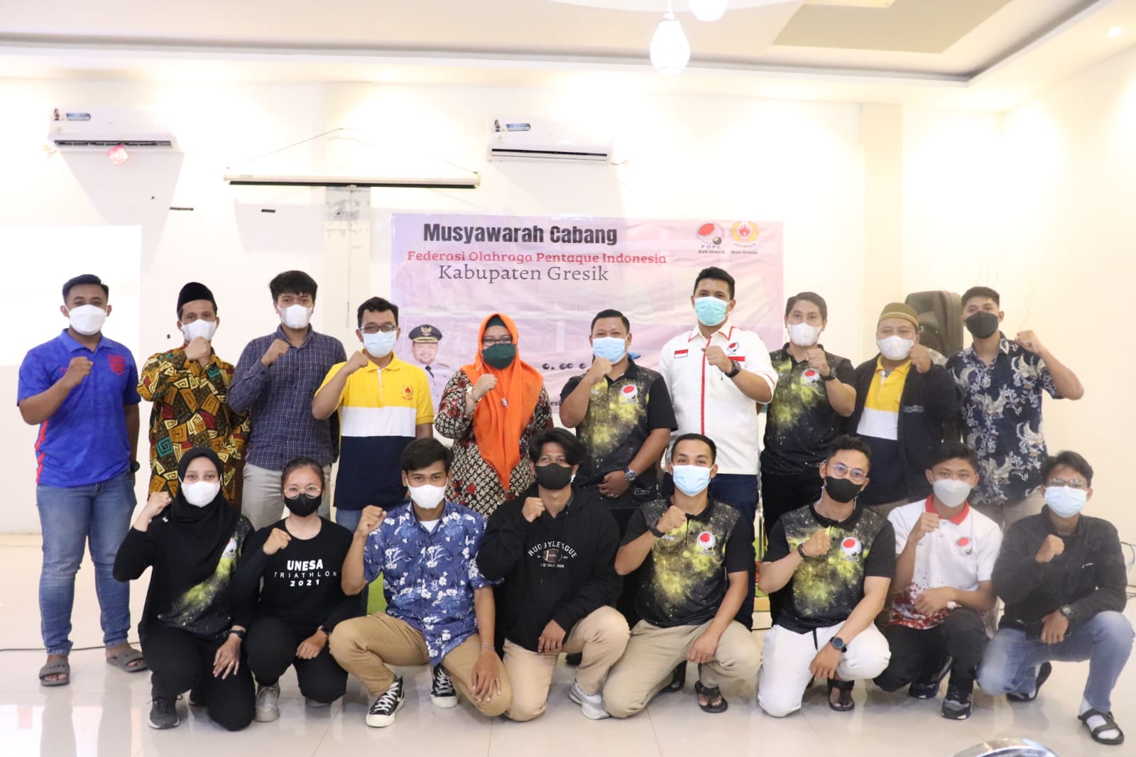 JAVASATU-GRESIK- Federasi Olahraga Petanque Indonesia (FOPI) Kabupaten Gresik menggelar Musyawarah Cabang (Muscab) perdana pada Minggu (5/12/2021). Muscab dibuka Wakil Bupati (Wabup) Gresik, Hj. Aminatun Habibah (Bu Min).