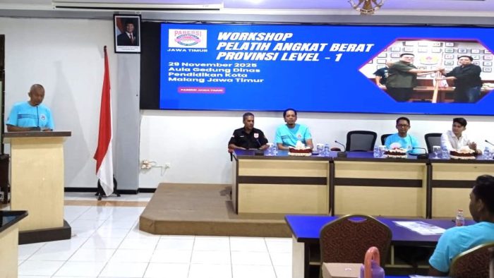Upaya ini diwujudkan melalui Workshop Pelatih Angkat Berat Provinsi Level 1 yang digelar di Aula Dinas Pendidikan Kota Malang, Sabtu (29/11/2025).