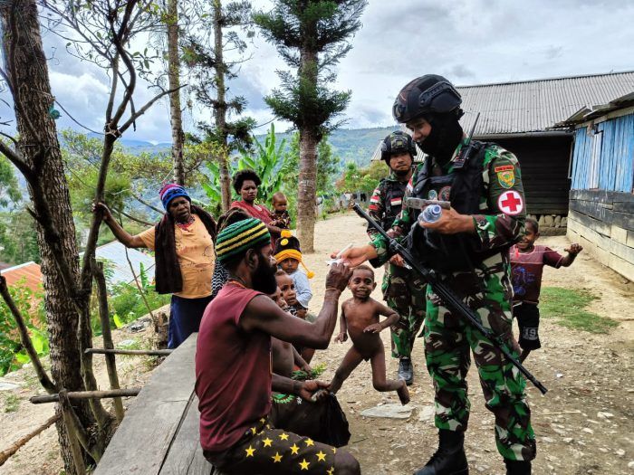 Kumpul Natal ala Satgas Pamtas Yonif Raider 142/KJ di Papua Pegunungan