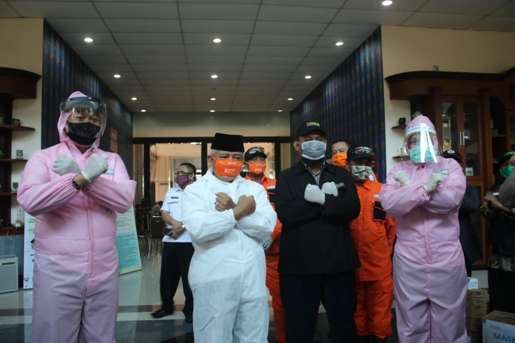 Javasatu,Malang- Ketua Dewan Perwakilan Rakyat Daerah (DPRD) Kabupaten Malang, Didik Gatot Subroto tertarik ketika menerima bantuan APD dari salah satu relawan, yang diketahui APD tersebut diproduksi dari penyandang disabilitas.