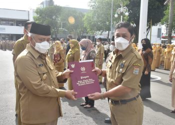 JAVASATU-MALANG- Sebanyak 20 Pegawai Negeri Sipil (PNS) di lingkungan Pemerintah Kabupaten (Pemkab) Malang menerima penghargaan Satyalancana Karya Satya. (Foto: Prokopim...