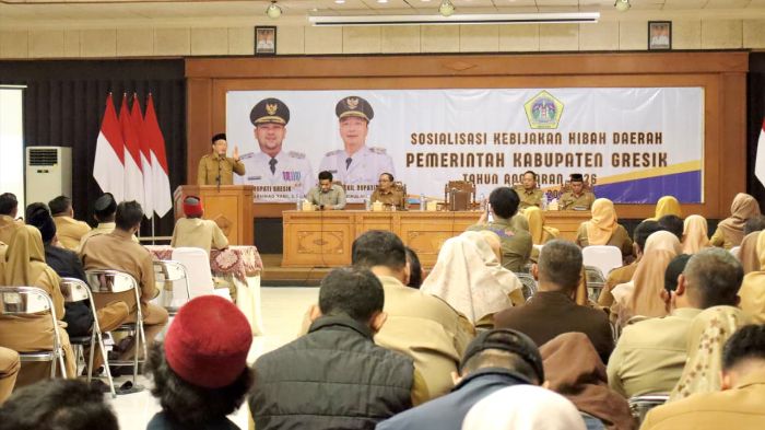 JAVASATU.COM- Pemerintah Kabupaten (Pemkab) Gresik memperketat verifikasi hibah daerah hingga tingkat desa untuk mencegah penyaluran yang tidak tepat sasaran. Langkah ini ditegaskan dalam Sosialisasi Kebijakan Hibah Daerah Tahun Anggaran 2026 di Kantor Bupati Gresik, Selasa (14/4/2026).