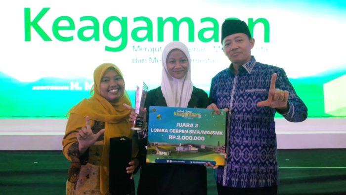 JAVASATU.COM- Naila Farihatun Naja, siswi kelas 12 MA Ma’arif Miftahul Ulum (MAMAMU) Melirang Bungah, Gresik, mengharumkan nama sekolahnya di tingkat nasional dengan meraih Juara 3 Lomba Cerpen Nasional kategori SMA/MA/SMK. Penghargaan diberikan pada Festival Literasi Keagamaan 2025, Rabu (20/11/2025) di Auditorium H.M. Rasjidi, Kementerian Agama, Jakarta.