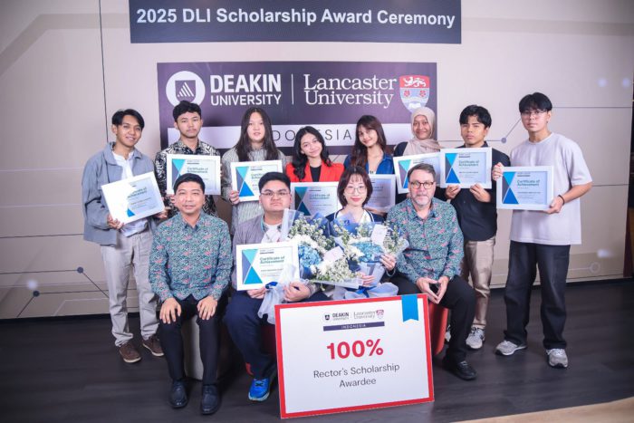 JAVASATU.COM- Di tengah naiknya biaya kuliah dan polemik Uang Kuliah Tunggal (UKT) di berbagai perguruan tinggi, Deakin University Lancaster University Indonesia (DLI) meluncurkan program beasiswa bagi putra-putri terbaik bangsa. Dalam seremoni di Kampus DLI Bandung, sebanyak 13 mahasiswa resmi menerima beasiswa prestasi tahun 2025, terdiri dari 12 penerima DLI Excellence Scholarship 60 persen dan 1 penerima Rector’s Scholarship 100 persen, Senin (11/11/2025).