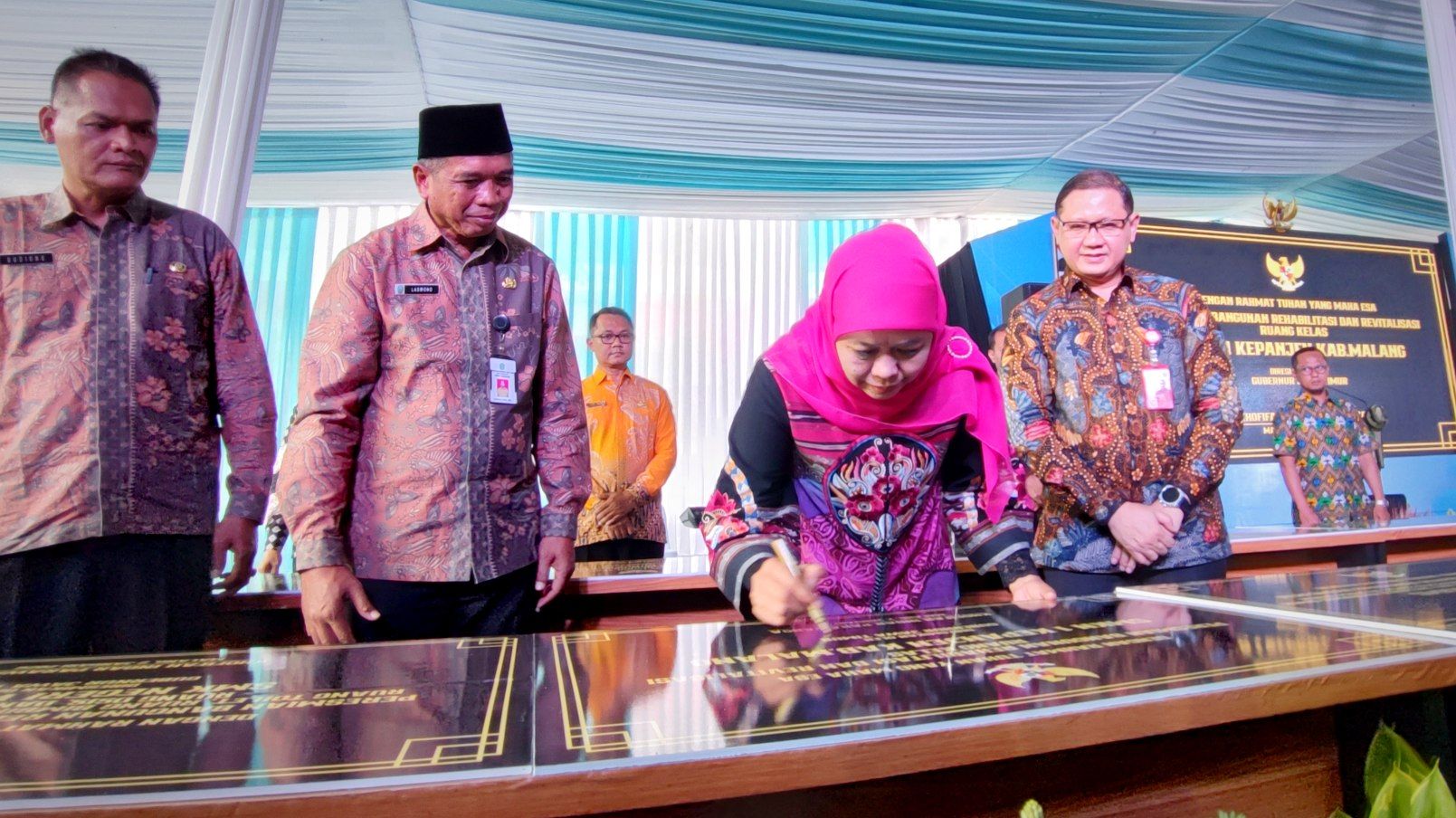 Peresmian ditandai dengan penandatanganan prasasti oleh Gubernur yang didampingi oleh Kepala Dinas Pendidikan Provinsi Jawa Timur, Aries Agung Paewai. Sebanyak 38 sekolah yang diresmikan terdiri dari 23 SMK, 12 SMA, dan 3 SLB, baik negeri maupun swasta.