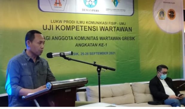 JAVASATU-GRESIK- Untuk meningkatkan kompetensi para Jurnalis di Kabupaten Gresik, Komunitas Wartawan Gresik (KWG) kerjasama dengan PT Smelting mengadakan Uji Kompetensi Wartawan (UKW). Sebanyak 27 jurnalis mengikuti UKW angkatan pertama tersebut, Sabtu – Minggu (25 – 26/9/2021).