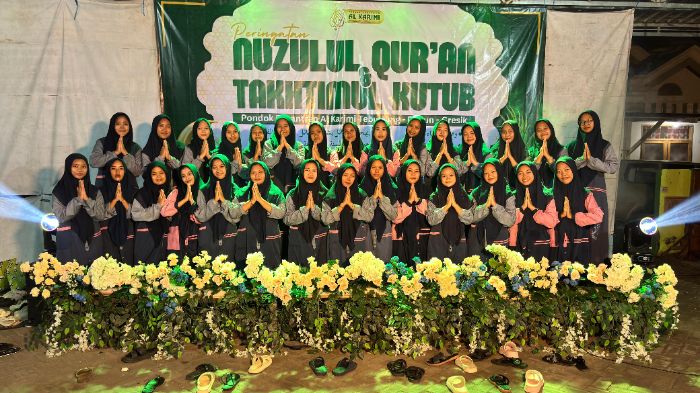 JAVASATU.COM- Ratusan santri Pondok Pesantren (Ponpes) Al-Karimi Tebuwung, Kecamatan Dukun, Kabupaten Gresik menggelar Takhtimul Kutub atau khataman kitab kuning pada malam Selikur (dua puluh satu) Ramadan, Selasa (10/3/2026). Kegiatan tersebut menjadi bagian dari tradisi pesantren dalam memperingati Nuzulul Qur’an sekaligus menutup rangkaian pengajian kitab selama Ramadan.