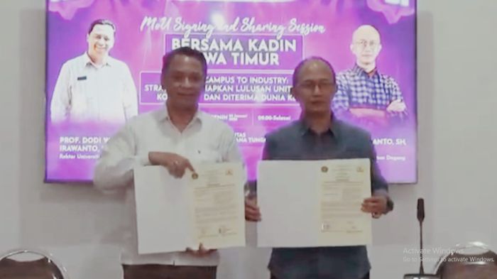 Kerja sama tersebut ditandai dengan penandatanganan nota kesepahaman (Memorandum of Understanding/MoU) antara Rektor Unitri Prof. Dodi Wirawan Irawanto dan Ketua Umum Kadin Jawa Timur Adik Dwi Putranto, yang digelar di Ruang Sidang Rektorat Unitri Malang, Senin (26/1/2026).