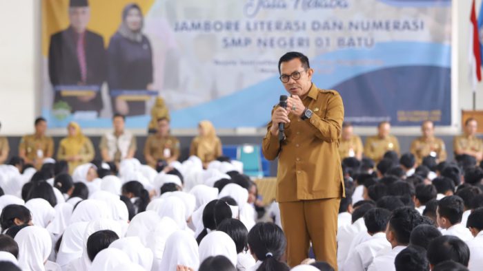 JAVASATU.COM- Wali Kota Batu Nurochman mendorong peningkatan kualitas pendidikan sekaligus kepedulian terhadap lingkungan saat menyapa 944 siswa SMPN 1 Batu dalam program Batu Greenation Goes to School, Senin (29/9/2025).