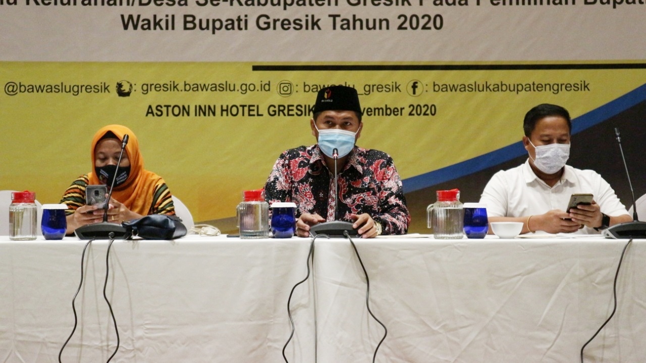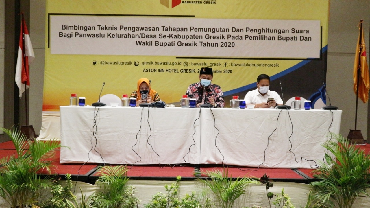 Javasatu,Gresik- Sebanyak 356 Panwaslu Kelurahan/Desa (PKD) se Kabupaten Gresik mengikuti Bimbingan Teknis (Bimtek) tentang tata cara dalam pengawasan tahapan Pilkada 2020 Badan Pengawas Pemilihan Umum (Bawaslu) Gresik. Selasa (24/11/2020).