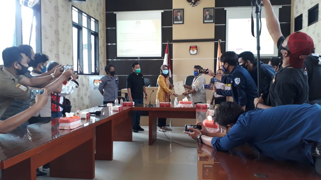 “Gak sam, cukup ayas (tidak mas, cukup saya). Sementara paslon akan hadir waktu pengambilan nomor urut bersama LO. Karena agendanya kami menerima penetapan, jadi paslon tidak perlu hadir. Cukup diwakilkan LO saja,” ujar Soetopo, Selasa (13/10/2020).
