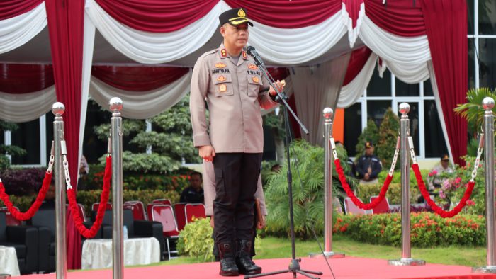 JAVASATU.COM-GRESIK- Kapolres Gresik AKBP Adhitya Panji Anom memberikan amanah dalam apel pagi di halaman Mapolres Gresik Jalan dr Wahidin Sudirohusodo, Kecamatan Kebomas, Kabupaten Gresik. Alumnus Akpol 2002 ini menegaskan kepada seluruh anggota untuk berhenti aktivitas ketika waktu salat.