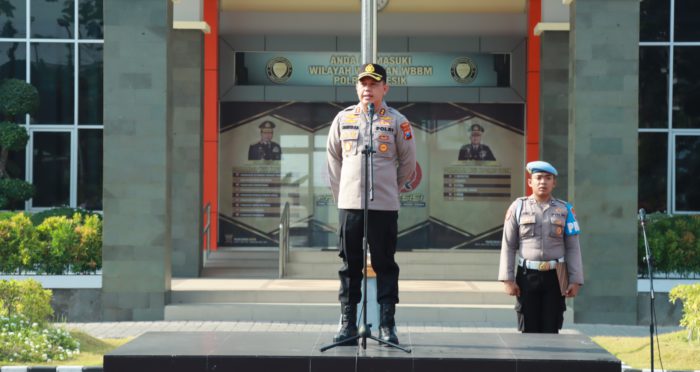 Apel yang diikuti oleh wakapolres Gresik Kompol Erika Purwana Putra, PJU, Anggota Polri dan ASN Polres Gresik.