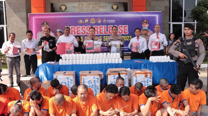 JAVASATU.COM-GRESIK- Polres Gresik berhasil mengungkap 22 kasus narkoba dan menangkap 31 tersangka selama Operasi Tumpas Narkoba 2023. Operasi tumpas narkoba digelar selama 12 hari, terhitung mulai tanggal 14 hingga 25 Agustus 2023.