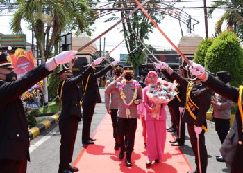 JAVASATU.COM-MALANG- Upacara tradisi pedang pora warnai penyambutan Kapolres Malang yang baru AKBP Ferli Hidayat, S.H., S.I.K., M.H. pada saat berjalan...