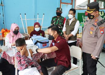 JAVASATU-GRESIK- Percepatan vaksinasi nasional dalam menekan laju penyebaran Covid-19 telah menyasar ke pelajar dan anak-anak. Kapolres Gresik, AKBP Mochamad NU...