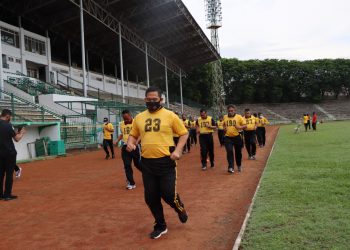 JAVASATU-GRESIK- Kapolres Gresik, AKBP Muchamad Nur Azis,SH,SIK,MSi bersama jajarannya menjalani Tes Kesamaptaan Jasmani (TKJ) di lapangan Petrokimia Gresik pada JUmat...