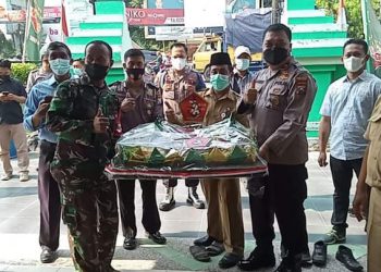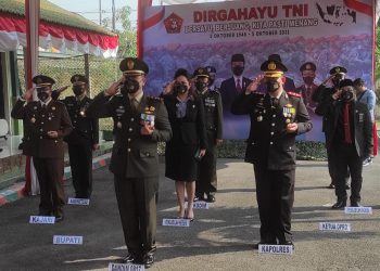 JAVASATU-GRESIK- Kapolres Gresik AKBP Mochamad Nur Azis, S.H., S.I.K., M.Si., mengikuti upacara HUT TNI ke-76 secara virtual di Makodim 0817...