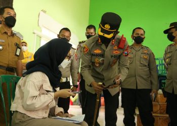 JAVASATU-MALANG- Kapolres Malang AKBP R. Bagoes Wibisono bersama Pejabat Utama (PJU) Polres Malang, mengecek langsung kegiatan percepatan vaksinasi di Balai...