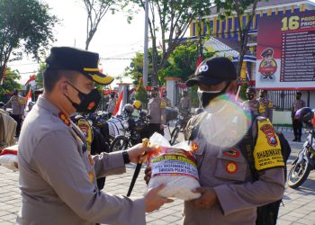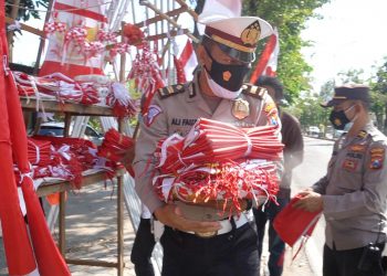 JAVASATU-GRESIK- Kapolres Gresik membagikan 1.700 bendera merah putih dan paket beras sebanyak 5 ton kepada masyarakat melalui Bhabinkamtibmas di wilayahnya...