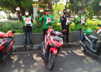 JAVASATU-GRESIK- Ojek Online (Ojol), Rental Mobil dan Sopir Online di Gresik antusias dan kompak penuh semangat mengibarkan bendera merah putih...
