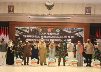 Javasatu,Gresik- Kodim 0817 Gresik menggelar upacara pembukaan Tentara Manunggal Membangun Desa atau TMMD ke-111 tahun 2021 di gedung Mandala Bhakti...