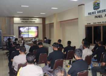 Javasatu,Gresik- Kepala Kepolisian Resor (Kapolres) Gresik AKBP Arief Fitrianto mengikuti video conference (vidcon) tentang percepatan vaksinasi Covid-19 oleh Asops Kapolri...