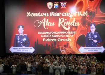 JAVASATU.COM-GRESIK- Kapolres Gresik AKBP Aditya Panji Anom menggelar acara nonton bareng (nobar) film 'Aku Rindu'. Film ini merupakan film drama Indonesia...