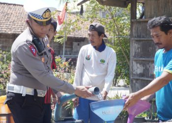 JAVASATU.COM-GRESIK- Kapolres Gresik AKBP Adhitya Panji Anom diwakili Wakapolres Gresik Kompol Erika Purwana Putra memberangkatkan bantuan air bersih bagi masyarakat...