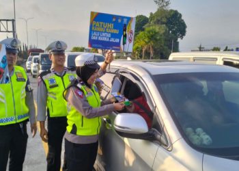 JAVASATU.COM-MALANG- Personel Satuan Lalulintas (Satlantas) Polres Malang, Polda Jatim, membagikan brosur/leaflet kepada pengendara yang melintas di sejumlah jalan raya di...