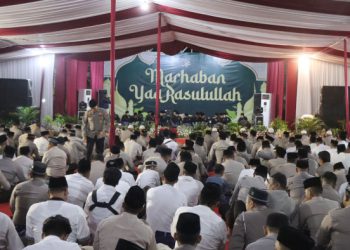JAVASATU.COM-MALANG- Ribuan jemaah menghadiri Majelis Sholawat Marhaban Yaa Rasulullah di halaman Mapolres Malang, Kabupaten Malang, Jawa Timur, Rabu (7/6/2023) malam. (Foto:...