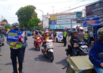 JAVASATU.COM-BATU- Satuan Lalu Lintas (Satlantas) Polres Batu memberikan teguran secara humanis untuk keselamatan kepada pengendara yang melanggar peraturan lalu lintas....