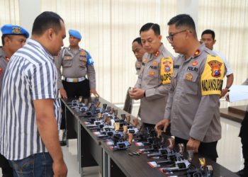 JAVASATU.COM-GRESIK- Polres Gresik memeriksa seluruh senjata api (senpi) yang digunakan oleh personelnya saat di lapangan. Pengecekan dipimpin langsung oleh Kapolres Gresik...