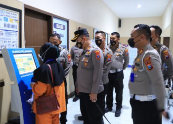 JAVASATU.COM-GRESIK- Layanan masyarakat seperti Satpas, Samsat dan SPKT Polres Gresik ditinjau Kapolres Gresik AKBP Mochamad Nur Azis, Jumat (4/11/2022). Kapolres...