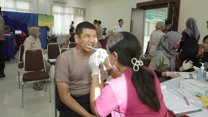 Pemeriksaan meliputi riksa kesehatan umum, riksa gigi, riksa tensi, pemeriksaan darah lengkap, pemeriksaan visus, EKG/treadmill, pemeriksaan urine, dan pemeriksaan X-ray.
