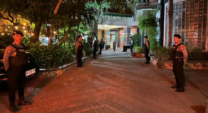 JAVASATU.COM-GRESIK- Polres Gresik turut membantu pengamanan jelang laga liga 1 derby Jawa Timur Persebaya vs Arema FC. Pengamanan dilakukan di areal Hotel Spatanawa Gresik yang merupakan tempat bermalam pemain Arema FC. Diketahui, laga Persebaya vs Arema FC digelar pada Sabtu (22/9/2023) sore di Stadion Gelora Bung Tomo Surabaya.